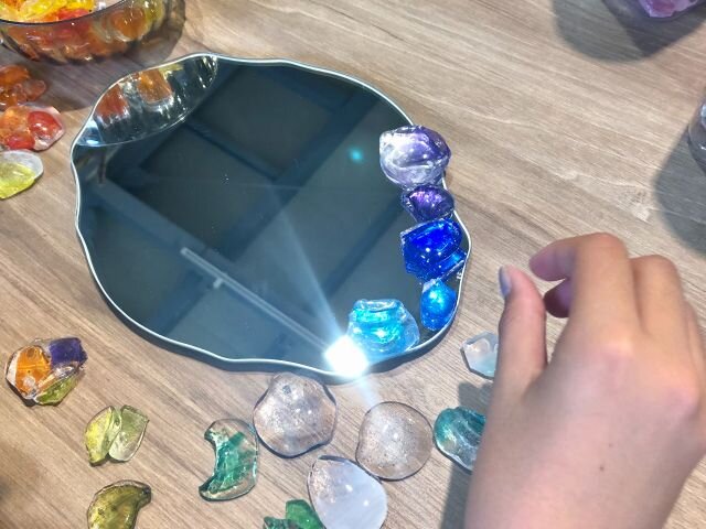 UVレジンで貼る (UVカットめがね使用)